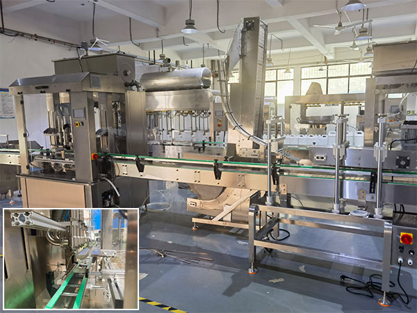 1L桶全自动灌装生产线的工作模式,主要依赖于PLC可编程软件设定,操作人员需要提前将所需灌装的参数规格、下料速度、重量多少、压盖力度等内容设定在显示屏幕当中,并将灌装的酱料备至在料箱内,启动颗粒酱灌装设备,搅拌系统将会按照设定的规格进入投产模式,搅拌系统内部的螺旋搅拌配置,会持续不断的对其进行正反双向搅拌,防止颗粒物料的沉淀,保持酱料的均匀性,软件输出将会按照程序设定,对容器进行自动进瓶、自动灌装、自动出瓶等操作,1L桶全自动灌装生产线的内部设定了活塞式定量配置,它能够精准、快速地将颗粒酱料以均匀输出模式送入容器内,随后,颗粒酱灌装设备则会进入上盖、压盖的后续操作。